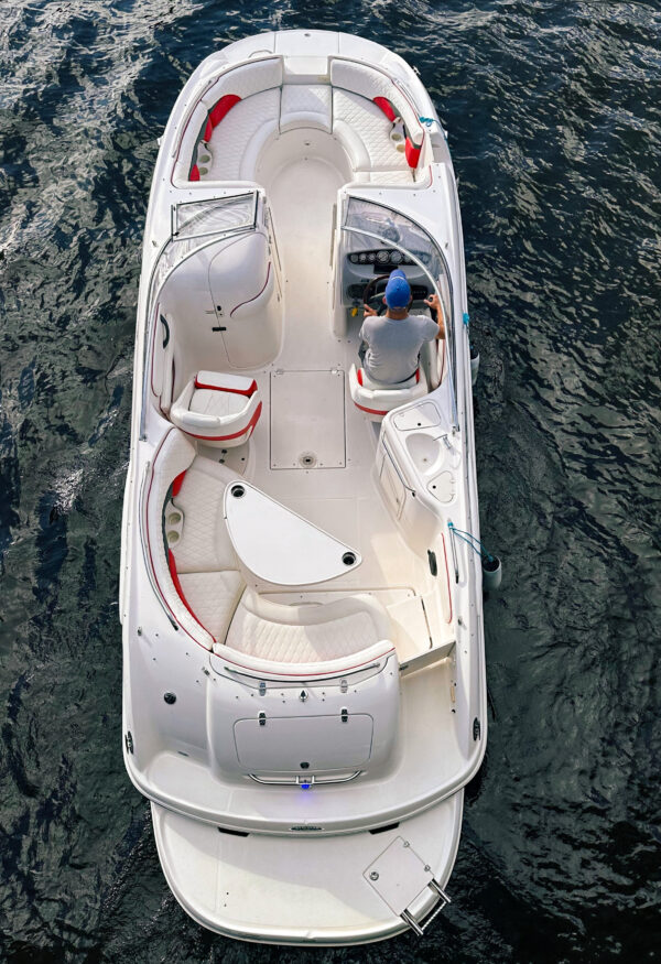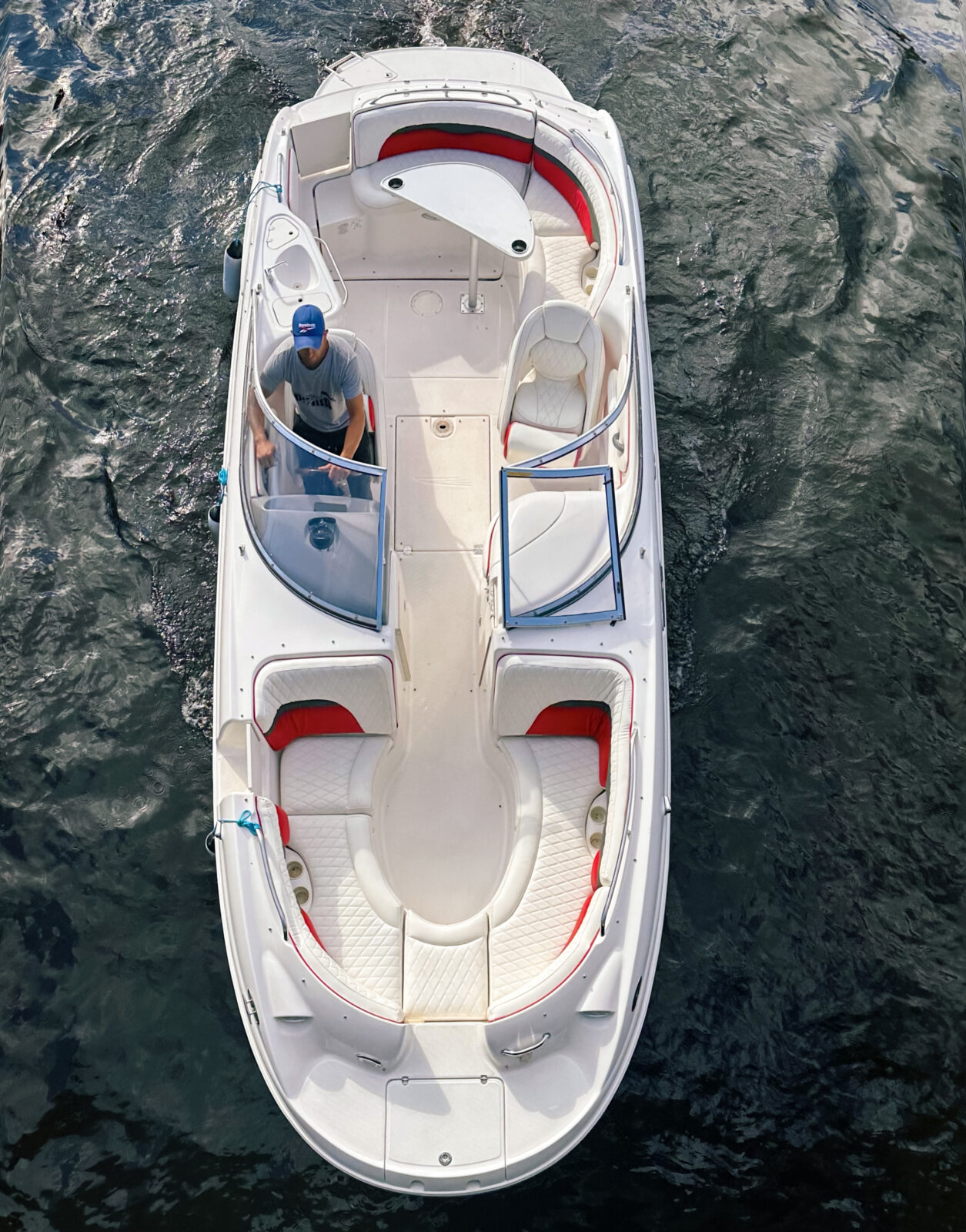 На борту есть пледы, музыка, тент от дождя, складной столик, туалет
