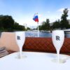 На борту: Тент, фирменные бокалы, музыка, ночная подсветка, пледы