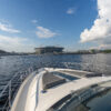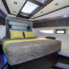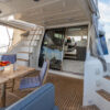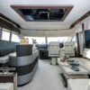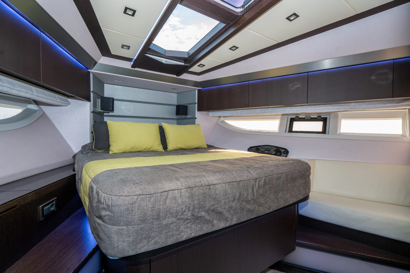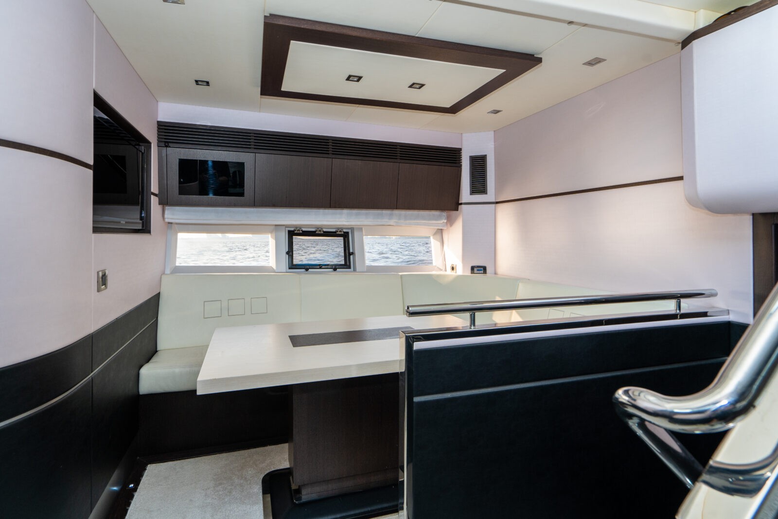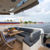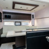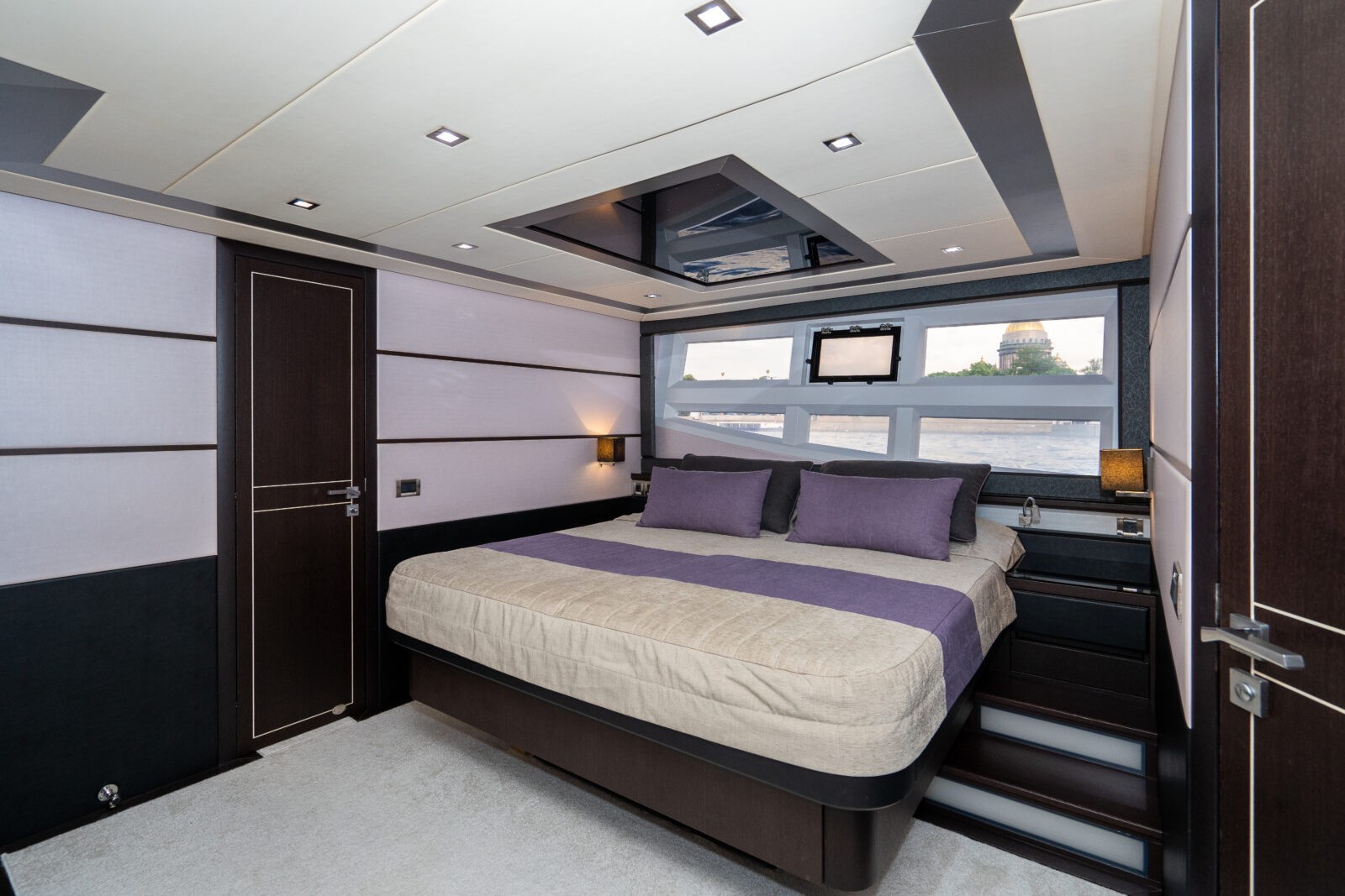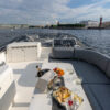 Две палубы с панорамными окнами, изысканная отделка из белоснежной кожи — все это создает атмосферу утонченности. Крытый салон, оснащенный мощной аудиосистемой и уютными диванами, станет идеальным местом для общения и отдыха. Барная зона и стол, где подаются чай, кофе и закуски, подойдут для дружеских встреч или переговоров с партнерами, а стильная подсветка и обогрев кают создают уют даже в прохладную погоду.