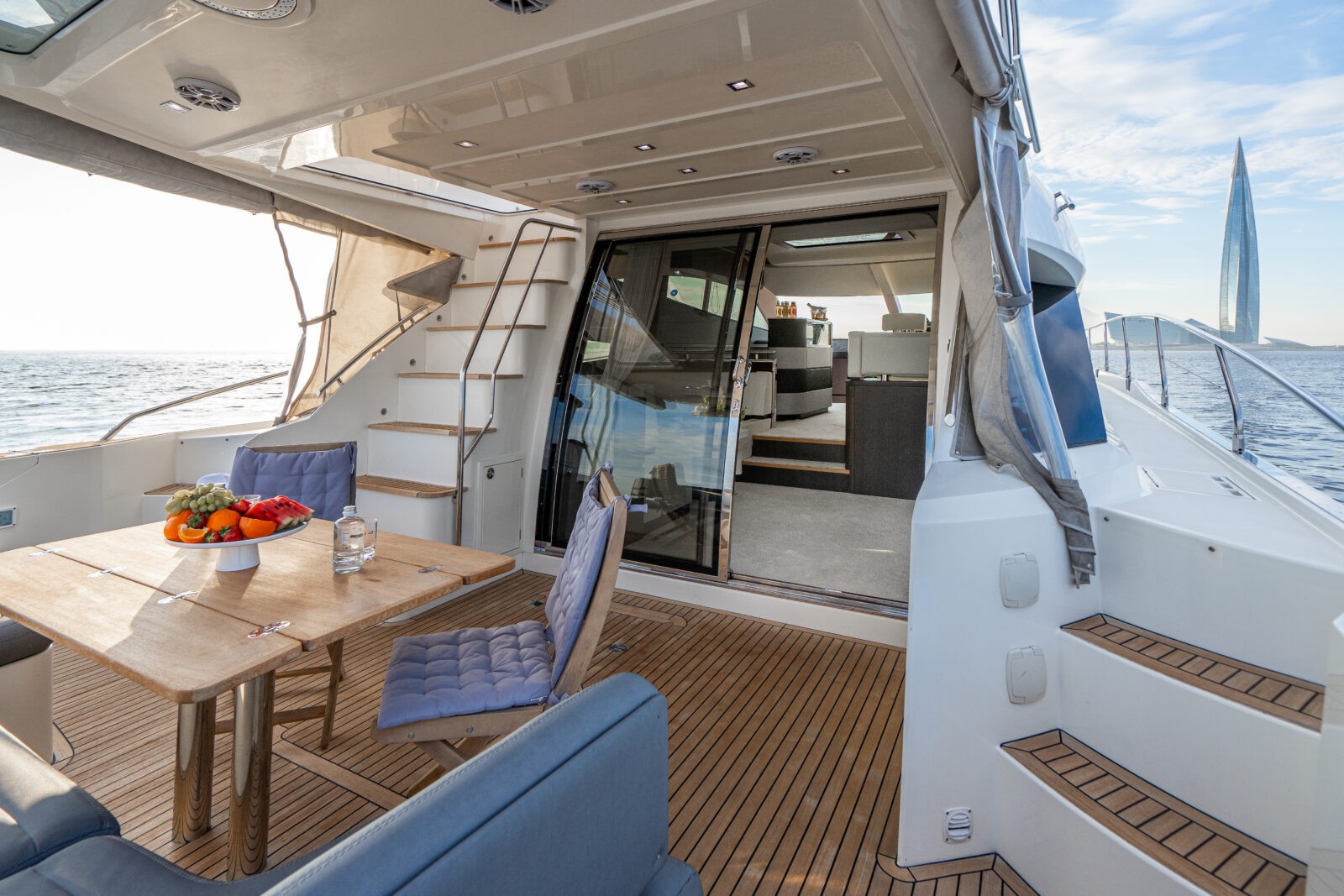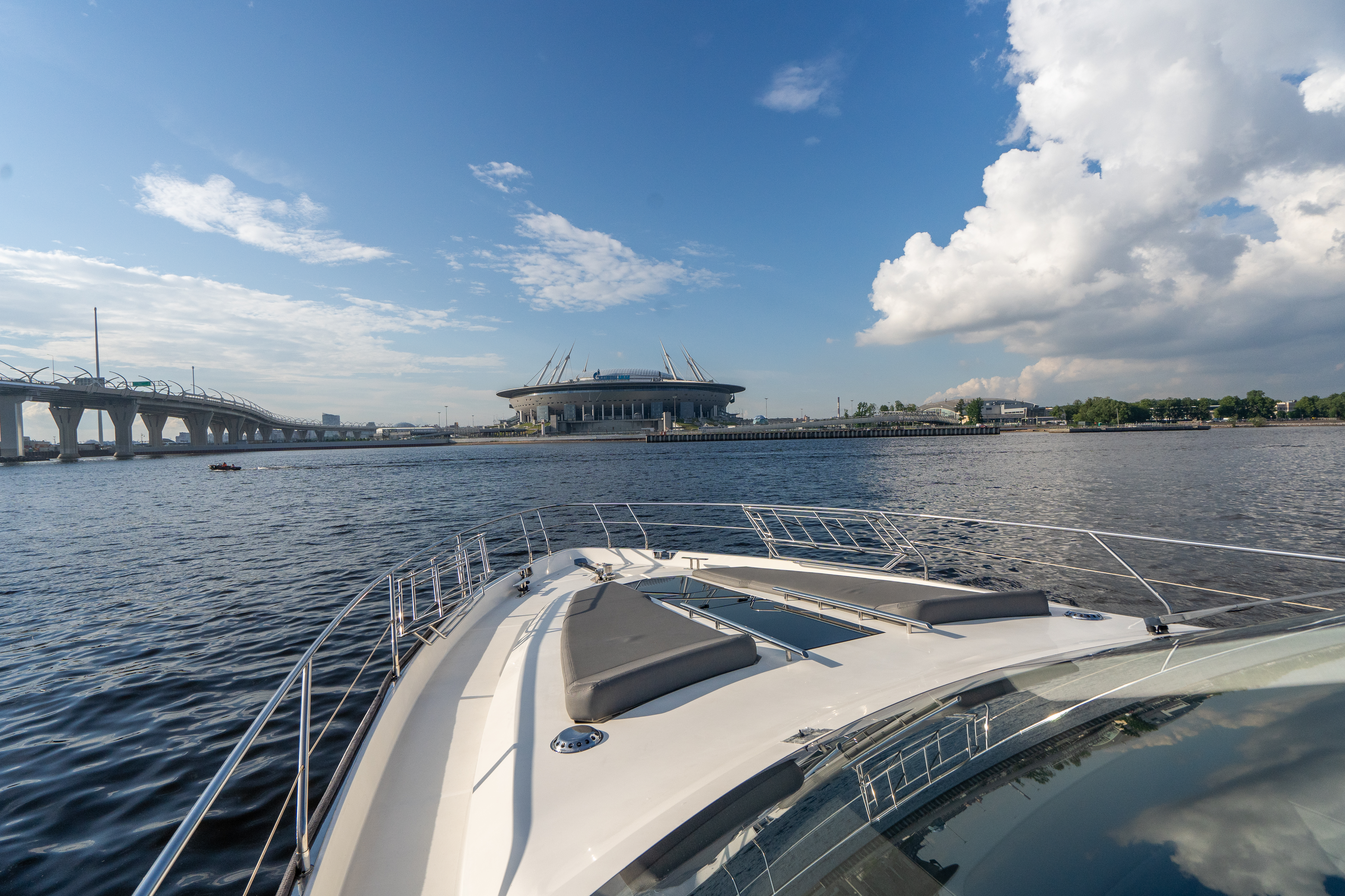 Моторная яхта Galeon 640 — комфортабельная яхта VIP-класса польского производства, 20 метров длиной, отлично подойдет и для праздника на яхте, и для неспешной прогулки по акватории Невы или круиз по Финскому заливу, Ладожскому озеру, Балтийскому морю.